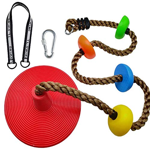 Farfly 最新型 ターザンロープ 子供 5つディスク ロープ遊具 2m ベルト&カラビナつき クライミングロープ 耐荷重150kg 公園 アウトドア ノットロープ 登り綱 登