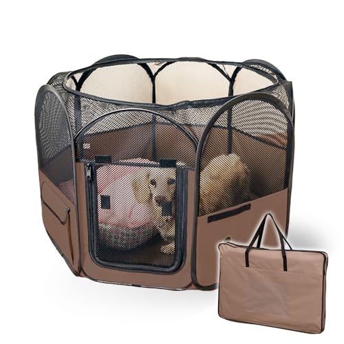 アイリスオーヤマ 犬 サークル ペット サークル 折りたたみ アウトドア 防災 ブラウン 超小型犬・猫用 幅80*奥行80*高さ52cm