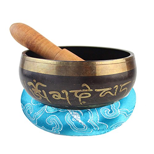 LeafIn シンギングボウル 仏教鉢 歌うボウル 仏の音のボウル ネパール仏碗 銅色 修行鉢 仏教 瞑想 治癒 弛緩 ヨガ 心霊浄化 癒し 除霊 スティック付き 敷物付き