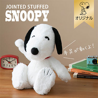 おかいものSNOOPYオリジナル!手や足を動かしてポーズを作れるぬいぐるみ。
