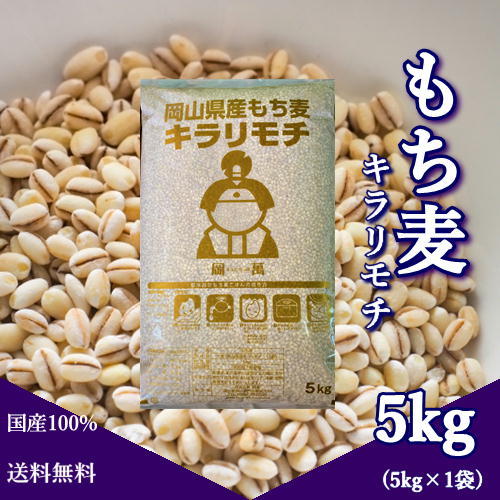 新麦 もち麦 令和7年産 キラリもち麦 5kg (5kg×1袋) 岡山県産 国産100% 麦 送料無料