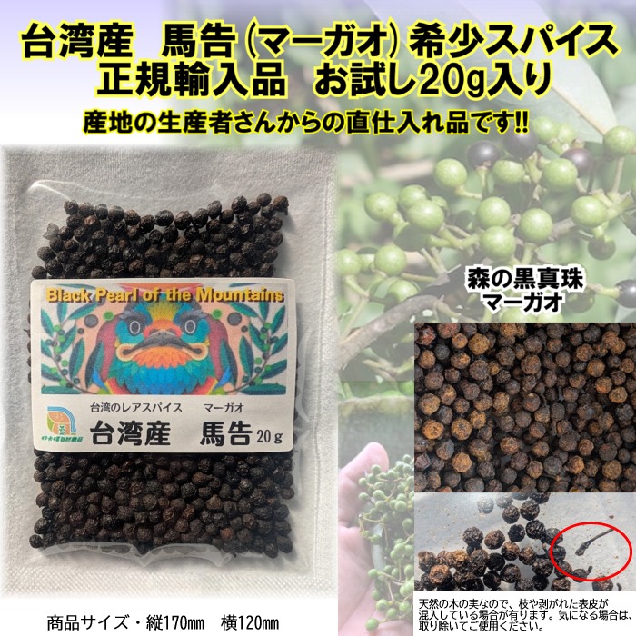 台湾産 馬告(マーガオ) 20g 希少スパイス・正規輸入品 お試し