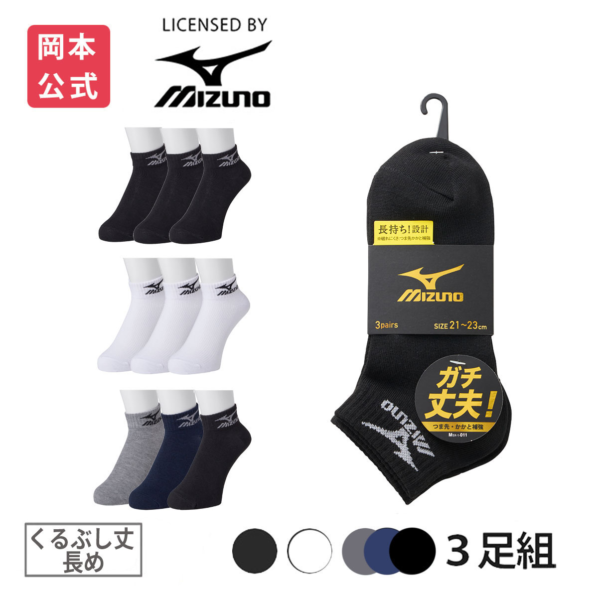 【靴下の岡本公式】【3足組】MIZUNO キッズ ソックス くるぶし丈 長め 高耐久設計 ミズノ デイリー ガチ丈夫