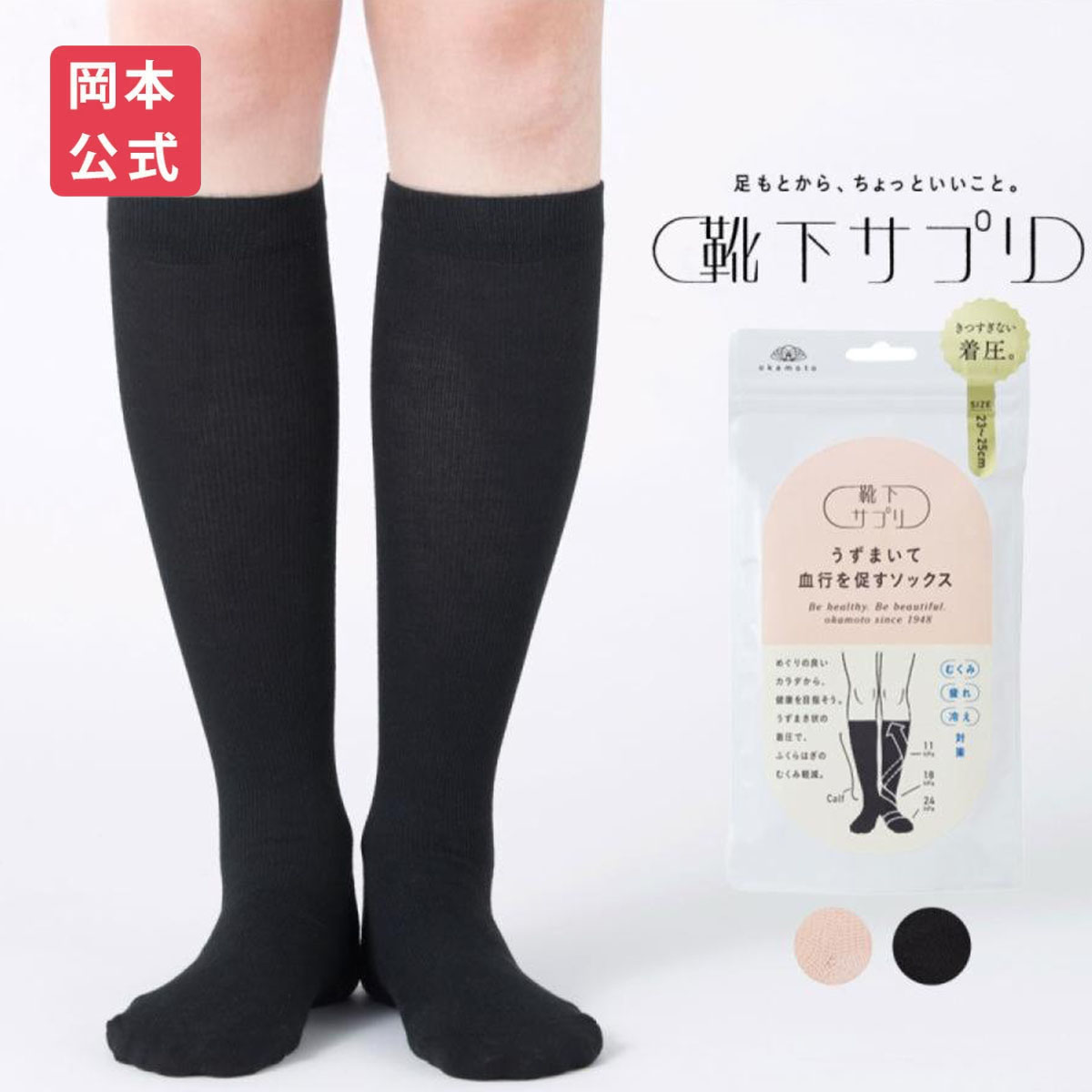 【靴下の岡本公式】靴下サプリ うずまいて血行を促すソックス okamoto レディース 脚 むくみ解消グッズ 浮腫み 冷え性 着圧ソックス 女性用 着圧靴下 くつ下