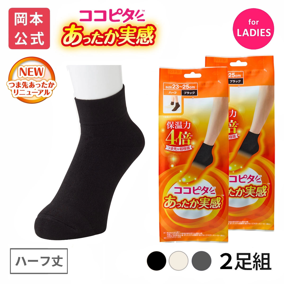 【靴下の岡本公式】【2足組】25AWリニューアル ココピタ あったか実感 レディース ハーフ丈 無地