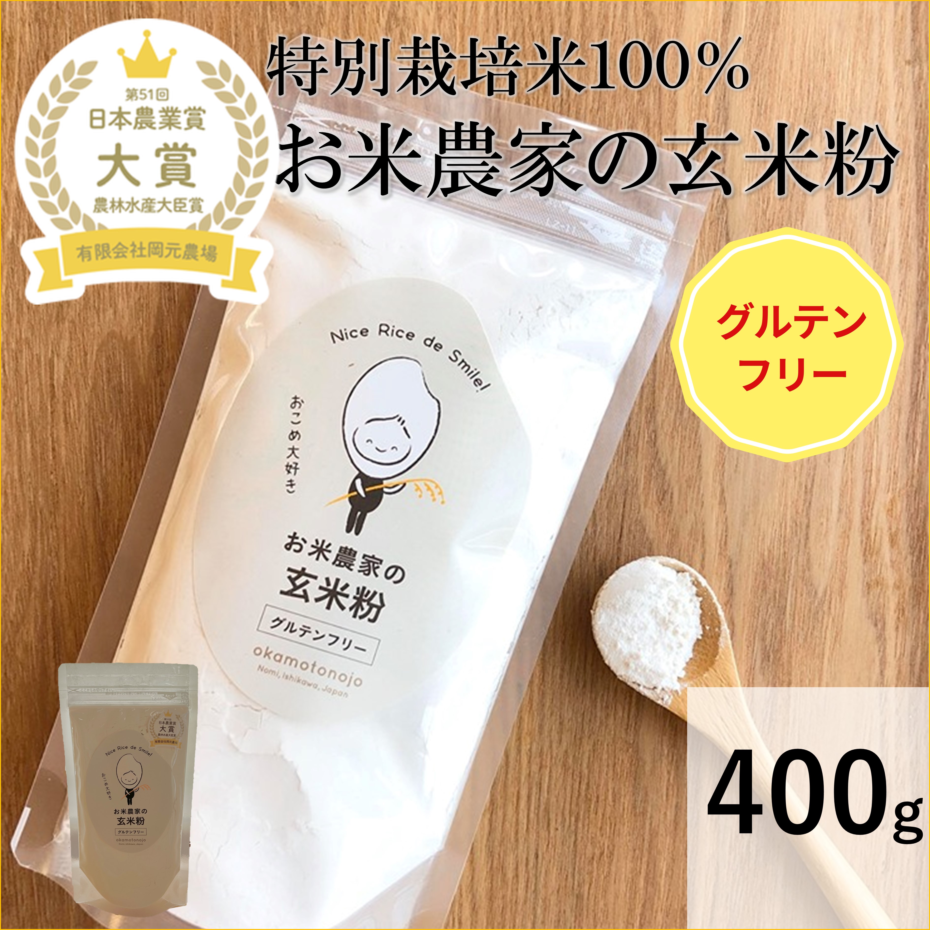 お米農家 米粉 玄米粉 400g レシピ付き 特別栽培米 100%有機肥料 送料込み