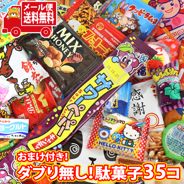 ダブり無し!人気の駄菓子35個をセットにしました。
