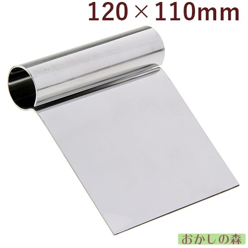 ステンレス製スケッパーの12cmです。パイやパン作りで、粉とバターを手早く合わせたり、生地を切り分ける際に欠かせないスケッパーです。