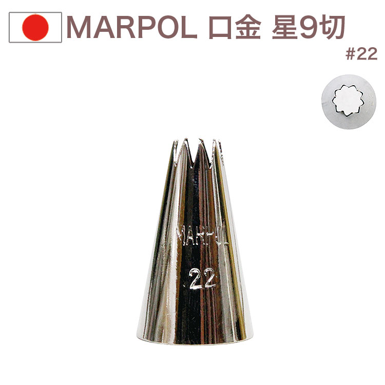 MARPOL 口金 星9切 #22 絞り口金 お菓子 ケーキ作りに デコレーション チップ 金口 絞り金 金属