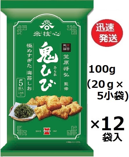 岩塚製菓 鬼ひび海苔しお 100g(20g×5小袋)×12袋入 笠原マサヒロ監修 イワツカ せんべい 塩せんべい のり塩あられ あられ 米菓 まとめ買い お菓子 米技心