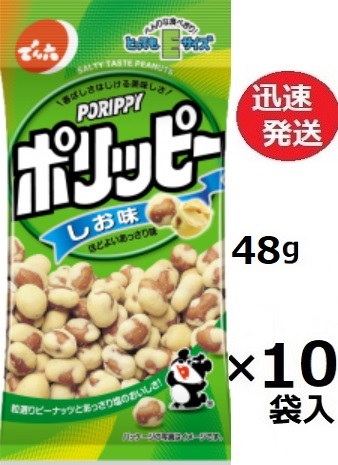 でん六 Eサイズ ポリッピー塩味 48g×10袋入 おつまみ 豆菓子 ピーナツ菓子 落花生 デンロク ナッツ※品切れ時お届けに一週間程かかる場合あり