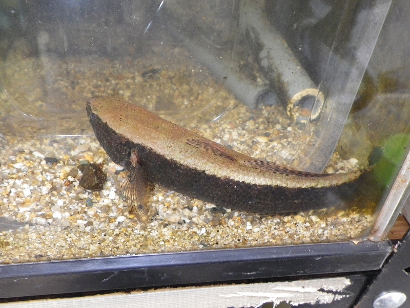 河川下流〜河口域に生息する魚です。夜行性で、日中は流木や岩の隙間、塩ビ管の中などに隠れています。