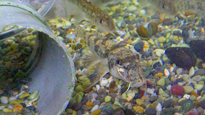 河川中〜下流域の砂底に生息し、驚いたりすると砂に潜ります。