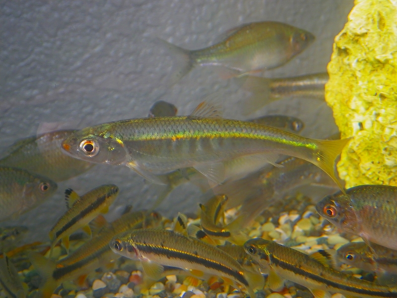 水槽内繁殖も可能です。ペアリングできた個体を、大き目の砂利を敷いた90cm以上の水槽に移します。水温は25℃程度がいいです。砂利の間に卵が確認出来たら親個体は元の水槽に戻します。仔魚の餌は、市販の稚魚用飼料でいいです。