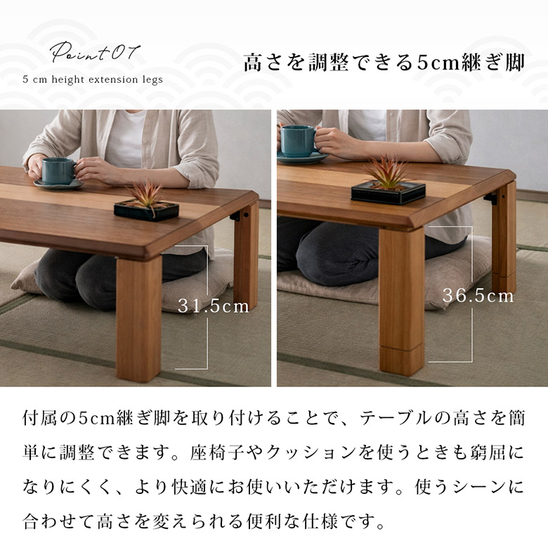・高さを調節できる5cm継ぎ脚付き