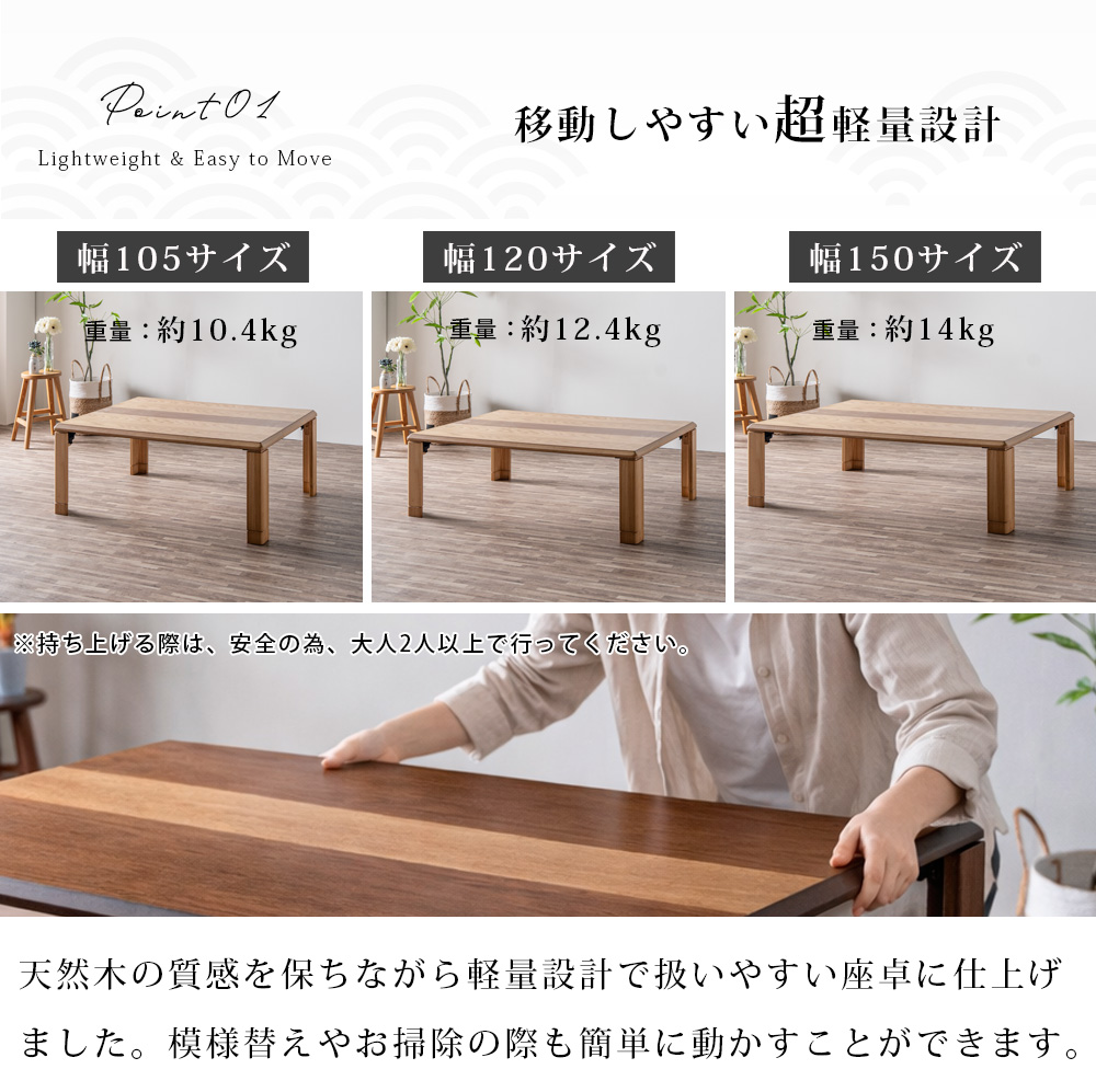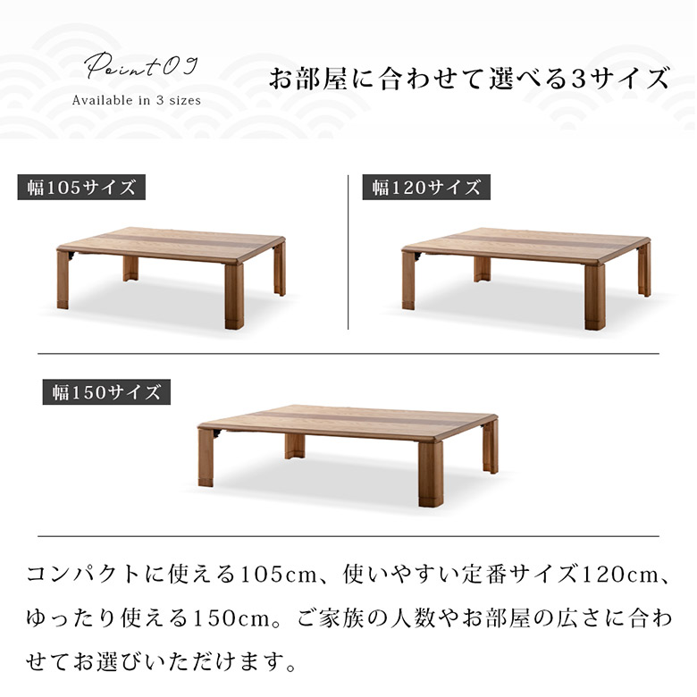 ・幅105/120/150の3サイズよりお選びいただけます