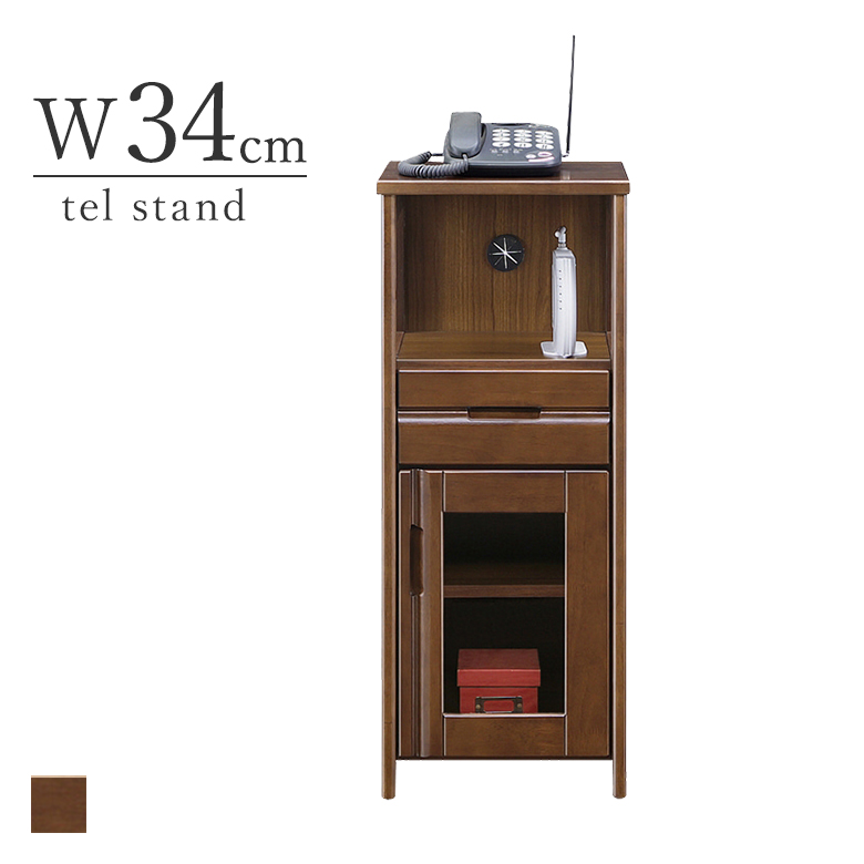 34-1段 TEL台(A-扉) 幅34cm ブラウン ラバーウッド 完成品 電話台
