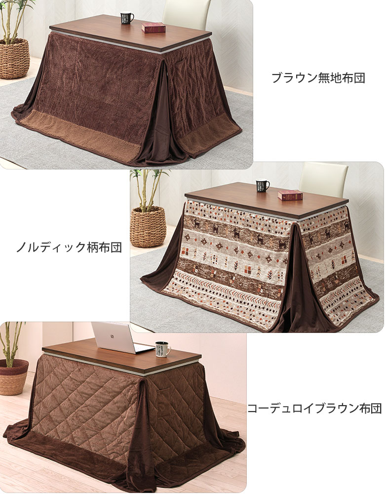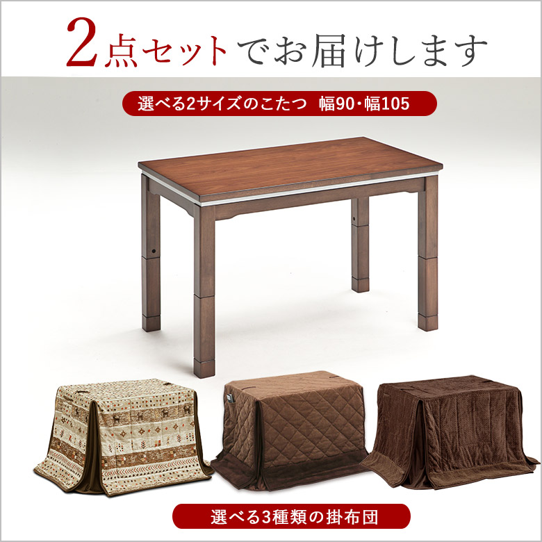 こたつ 2点セット 高さ4段階調節 こたつテーブル 選べる2サイズ 90×60/105×60 布団セット 高さ調節 1人用 こたつ ウォールナット ハイタイプ おしゃれ
