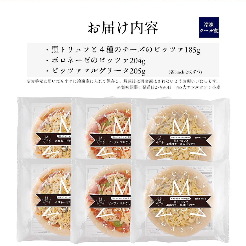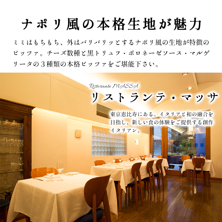| 商品名 | リストランテ・マッサ監修 3種のこだわりナポリ風ピッツァ |