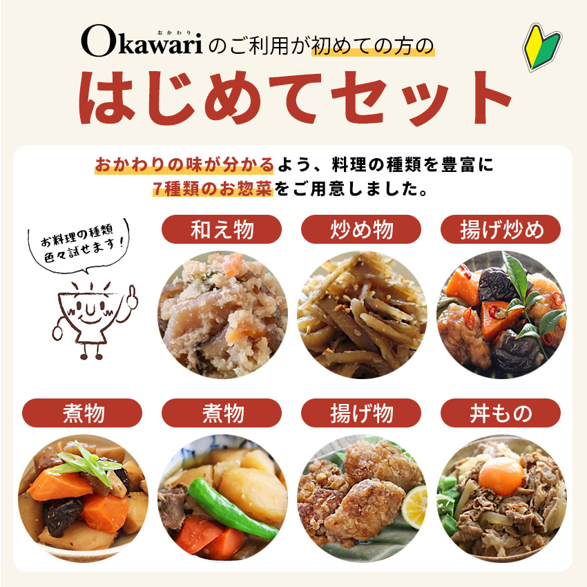 | 原材料・栄養成分は、各商品ページにてご確認ください | ●筑前煮 ●牛丼 ●鶏の唐揚げ ●鶏肉と茄子のピリ辛炒め ●肉じゃが ●きんぴらごぼう ●卯の花 |