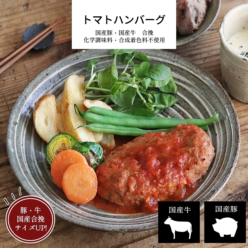 | 原材料名 | ハンバーグ(140g):豚肉(国産)、牛肉、玉ねぎ、卵液、生パン粉、牛乳、トマトケチャップ、食塩、黒胡椒、ナツメグ、(一部に卵、小麦、乳成分、大豆、豚肉、牛肉を含む) ソース(40g):トマト・ピューレー漬け(イタリア産)、玉ねぎ、オリーブオイル、オニオンパウダー、にんにく、食塩、砂糖、パセリ |