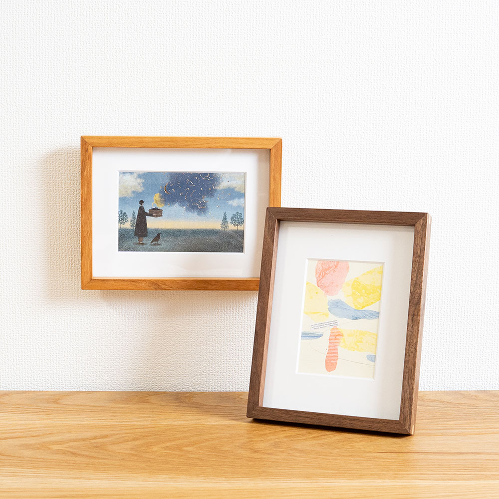木製 フォトフレーム ましかく、2L判、L判、ハガキ(ポストカード)の写真台紙を選べます 家具職人が作る選べる写真台紙付き天然無垢材フォトフレーム 沖家具 写