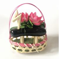 | 牛馬(発泡)、造花、竹かご |