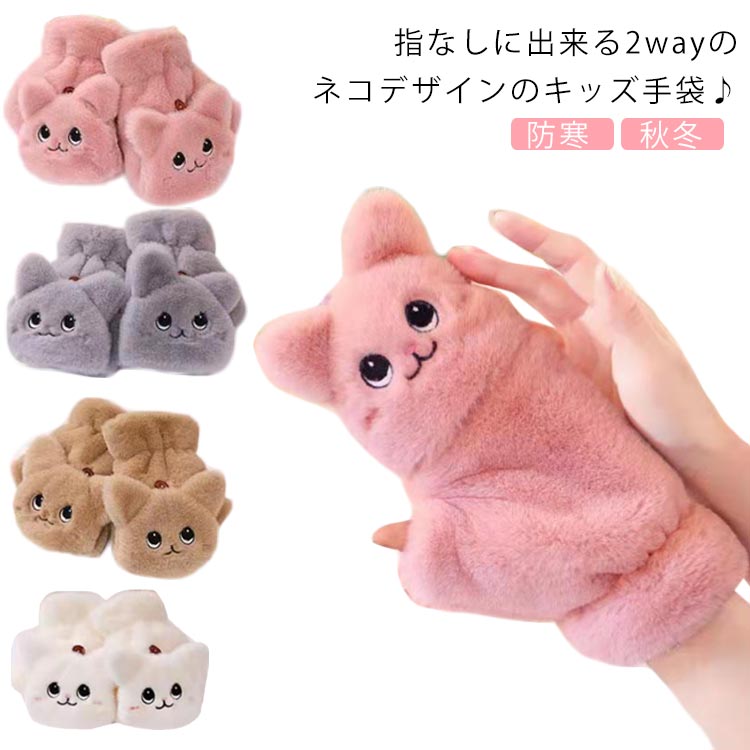 | 指なしに出来る2wayのネコデザインのキッズ手袋? ふわふわなファーが柔らかく暖かくて、手を寒さからしっかり保護してくれます。 寒い屋外やお出かけの時にはフードをかぶせて、暖かいミトン手袋になります。 寒くなったらボタンを外してミトンタイプに変更して、ちょっとした作業も楽々操作。 寒い冬の雪遊び、自転車、スキー、スノーボード、ウィンタースポーツ、通園、通学などに大活躍です! お子様に誕生日、クリスマス、新年に最適なギフトです。 | |