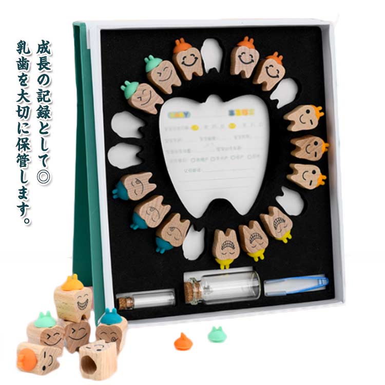 | 成長の記録として◎乳歯を大切に保管します。 木製ですので、素材の温かみを感じることが特徴です。 一つ一つにそれぞれ可愛い顔が描かれており、見ているだけでも楽しめるデザインとなっております? 耐食性と耐衝撃性が高いケヤキを使用しており、思い出を長時間保存するのにピッタリなアイテムです。 乳歯ケースのほかに小さな乳歯を取り扱う際に使用するピンセット、乳歯ケースに入れて安定して保管することができる脱脂綿、産毛やへその緒などを保管できるミニボトル、歯が抜けた日を記録することができる記録シールなどが入った充実したセットとなっております。 | |