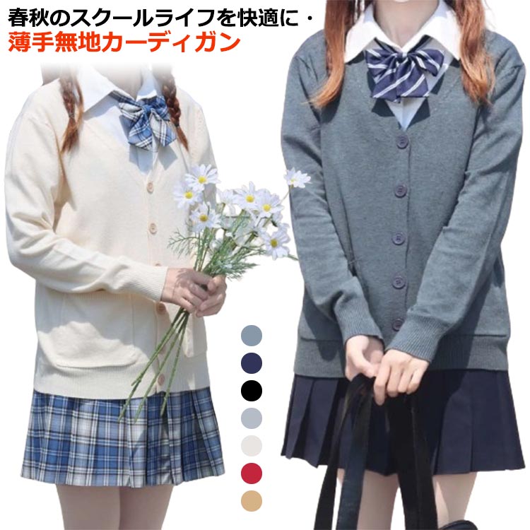 | 春秋のスクールライフを快適に?薄手無地カーディガン 年齢を選ばず、 学生 女子高生の制服にも、普段使いにもお使いいただけます! | |