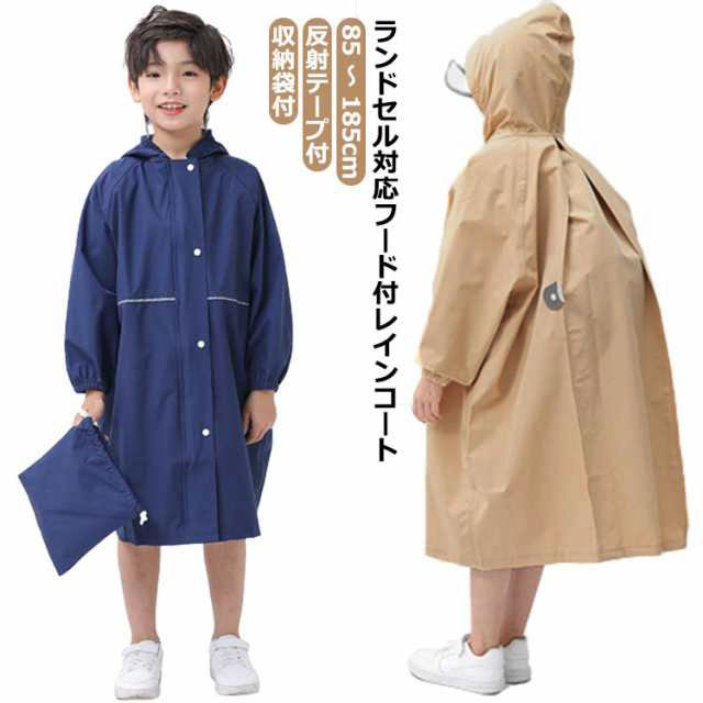 | 85 〜 185cm ランドセル対応フード付レインコート 収納袋付 反射テープ付 車のライト等を反射するテープ付きで通園通学も安心! お子様の安全に配慮したランドセル対応レインコートです。 キャラクターやロゴが無い無地でお受験にもご使用いただけます。 背中のスナップを外すとマチが大きく広がって、ランドセル全体をすっぼりカバーできます。 スナップを留めればすっきりシルエットになるので休日のおでかけにもOK。 帽子、前後やランドセルに反射テープ付きで安心?安全!夕暮れ時に車のライトを反射し、ドライバーからの視認性が向上します。 使用前後は小さく折りたたんで、付属の共布袋に収納できます。(収納袋付) | |