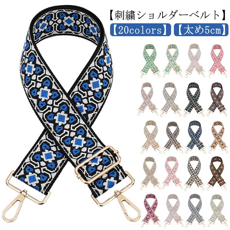 | 【刺繍ショルダーベルト】【20colors】【太め5cm】 気のショルダーベルトの幅広?刺繍タイプが登場★ 従来より太めな作りなので肩への負担を軽減? 高級感のある刺繍デザインは選べる20カラー! 長さ調節可能で、肩掛けや斜めがけなどシーンに合わせて使える◎ | |