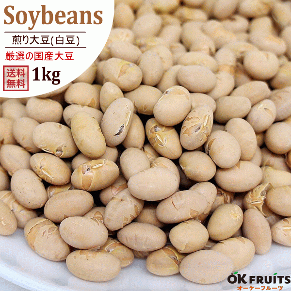 ナッツ 煎り 大豆 1kg(500g×2) 国産 白大豆 無塩 無添加 おつまみ おやつ 非常食