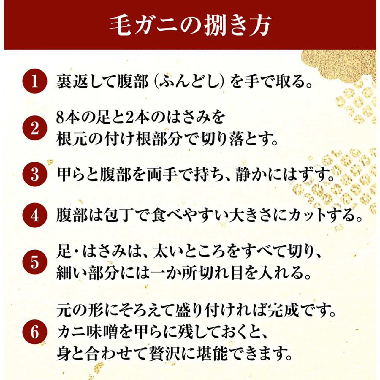 当店の毛ガニは北海道産のみを使用。