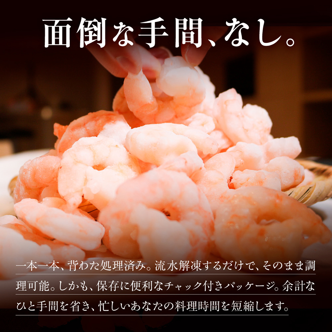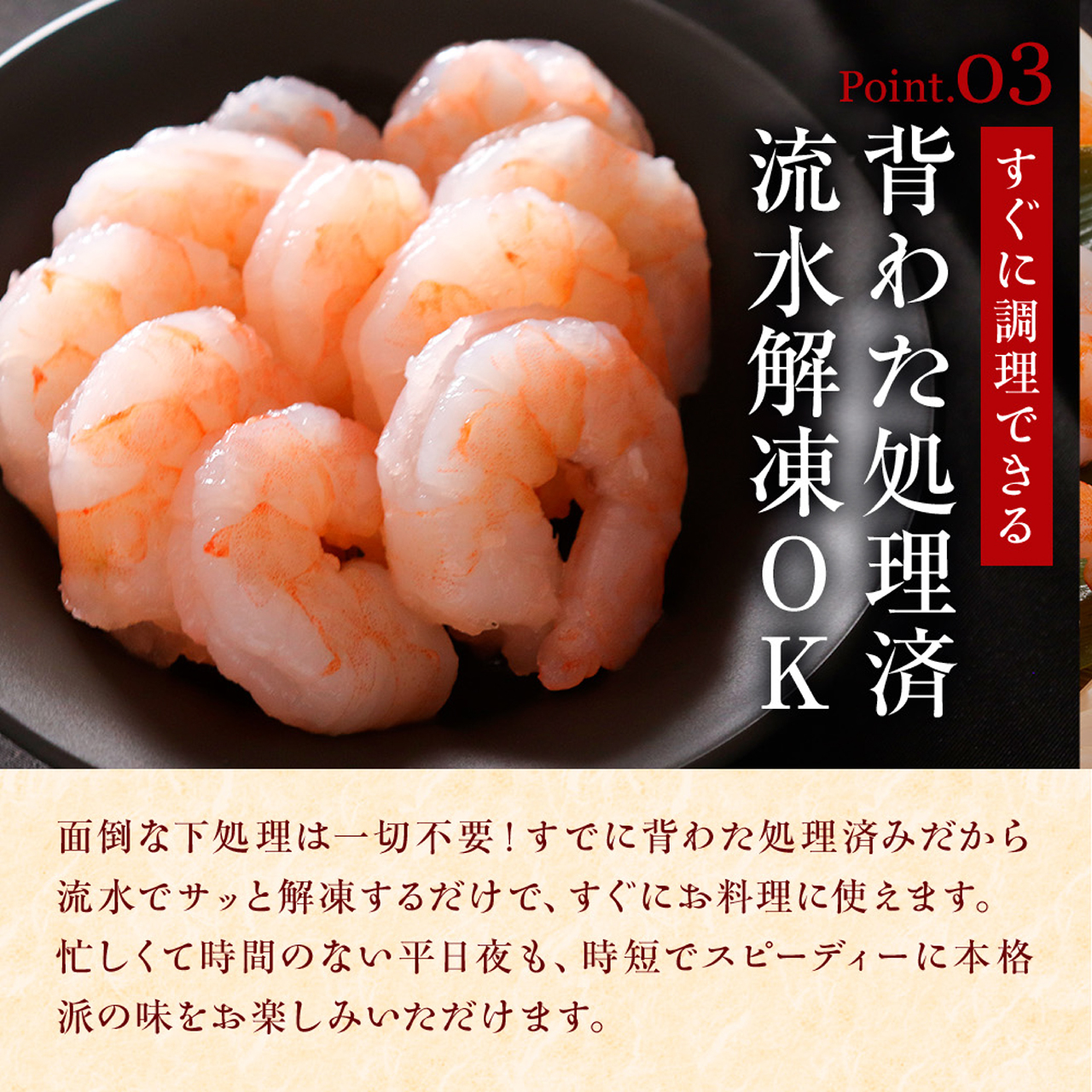 下処理済みで頭・殻・背わたなし!解凍してすぐ使えます