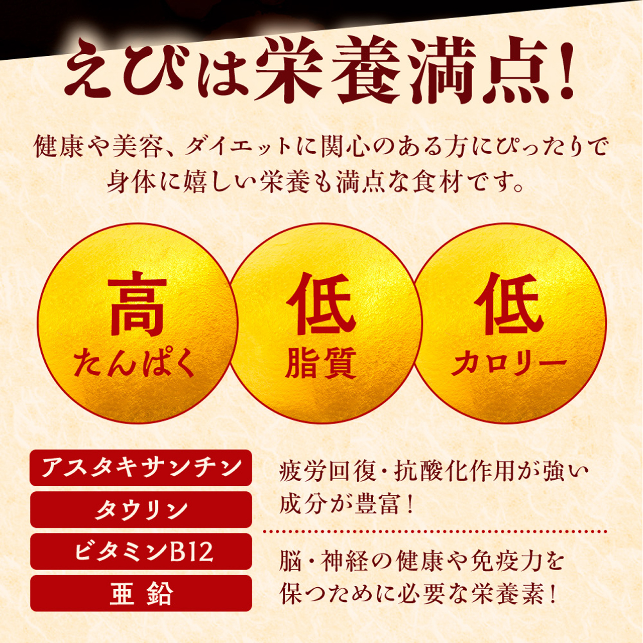 アミノ酸のグリシンが豊富。エビ特有の臭みもなく、深い旨みと甘みが味わえます