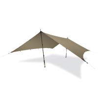 ●設営の容易さを追求した独自のタープ形状が特徴です。中央に張り綱が不要なため素早く設営できるのが特徴です。ポールの移動が簡単なのでバリエーション張りもストレスなく行えます。