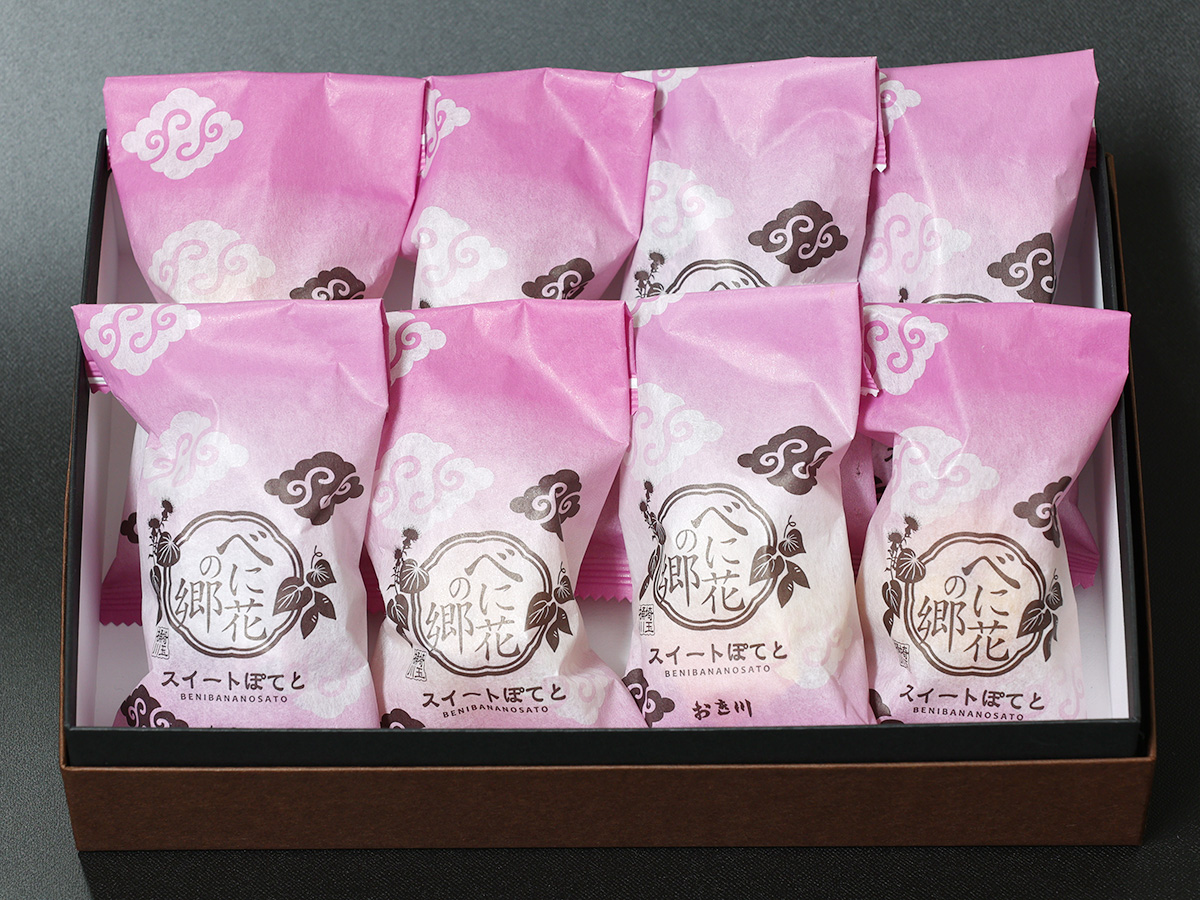 鳴門金時を使ってほっくり焼き上げたスィートポテトに、べに花を乗せました。