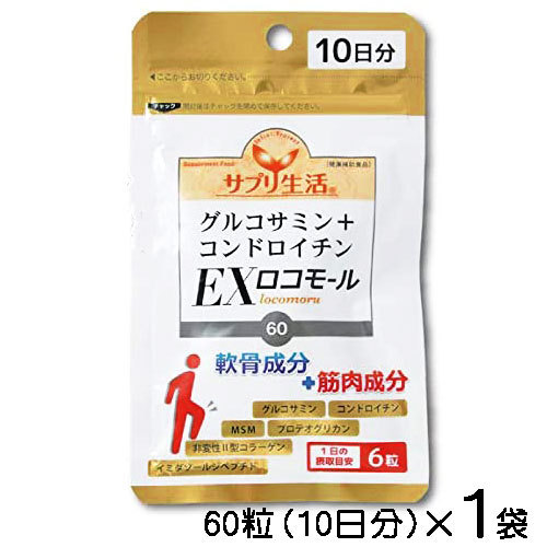 サプリ生活 グルコサミン+コンドロイチン EXロコモール 60粒(10日分)〔メール便発送 送料無料〕