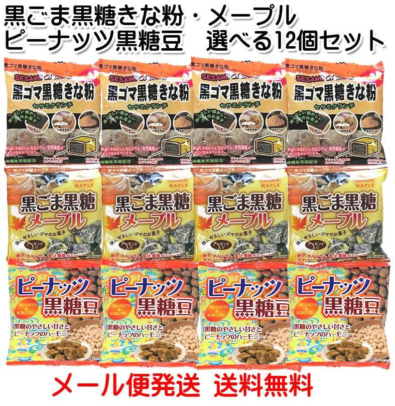 黒ゴマ黒糖 きな粉・黒ゴマ黒糖 メープル・ピーナッツ黒糖豆 選べる12小袋セット 黒ごま パイオニアフーズ