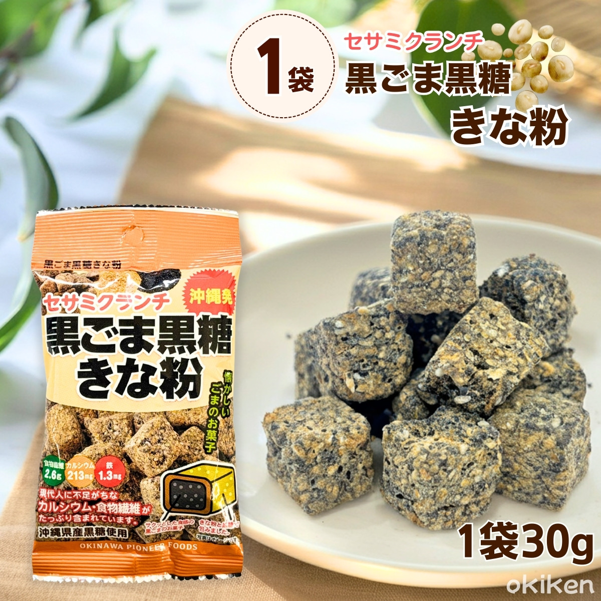 セサミクランチ 黒ごま黒糖きな粉 30g×1袋 沖縄 お菓子 お土産 お試し ゴマ おこし 菓子 黒糖おこし ごまおこし風 ポイント消化 送料無料