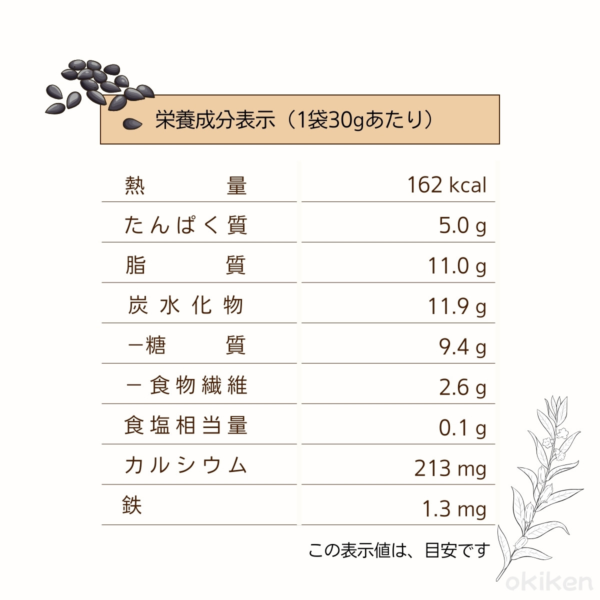 ■原材料名:煎りごま黒(国内製造)、砂糖(加工黒糖、黒糖、中ざら糖)、落花生、水飴、きな粉、澱粉、食塩(一部に落花生・ごま・大豆を含む)