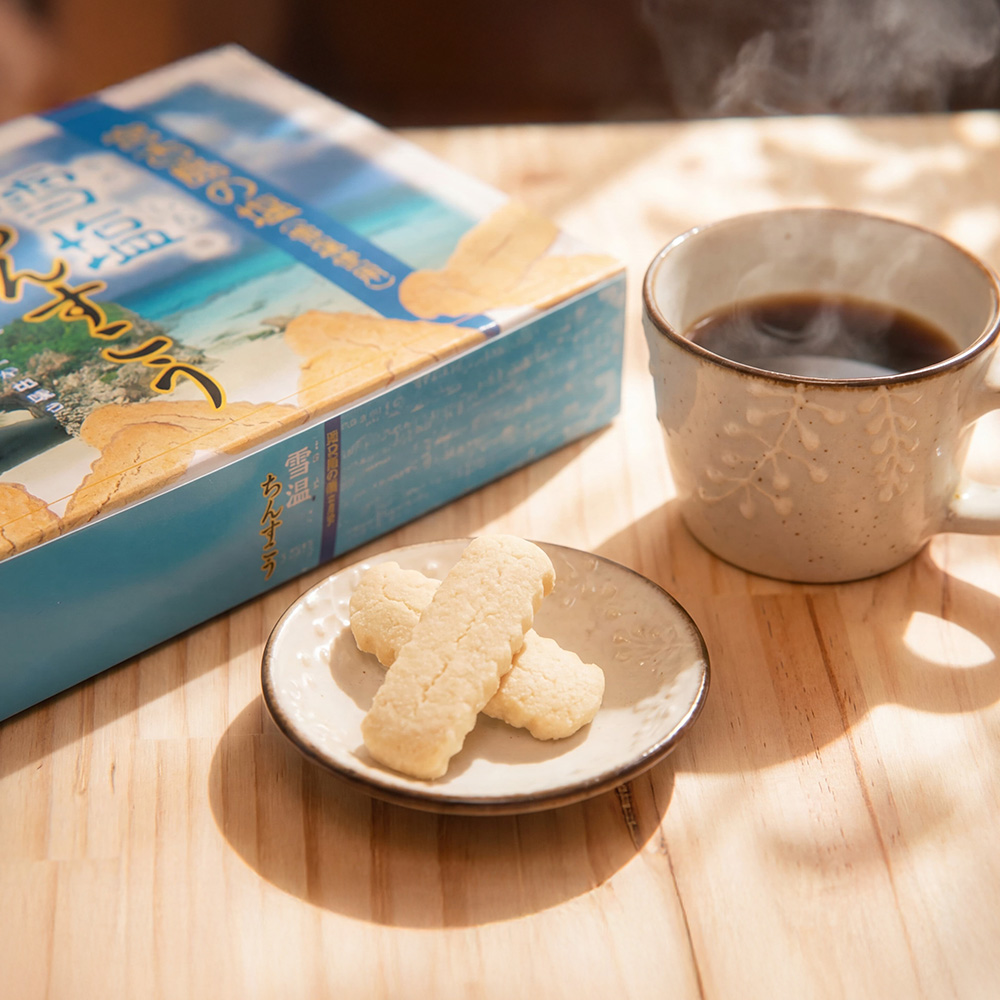 琉球銘菓「ちんすこう」と宮古島の「雪塩」を独自の製法で組み合わせ、
