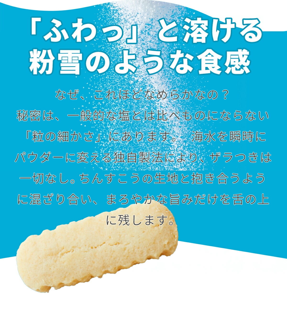 雪塩のまろやかな塩味とミルクのクリーミーな風味が調和した独自の味わいを実現。ひとつひとつ丁寧に焼き上げています。