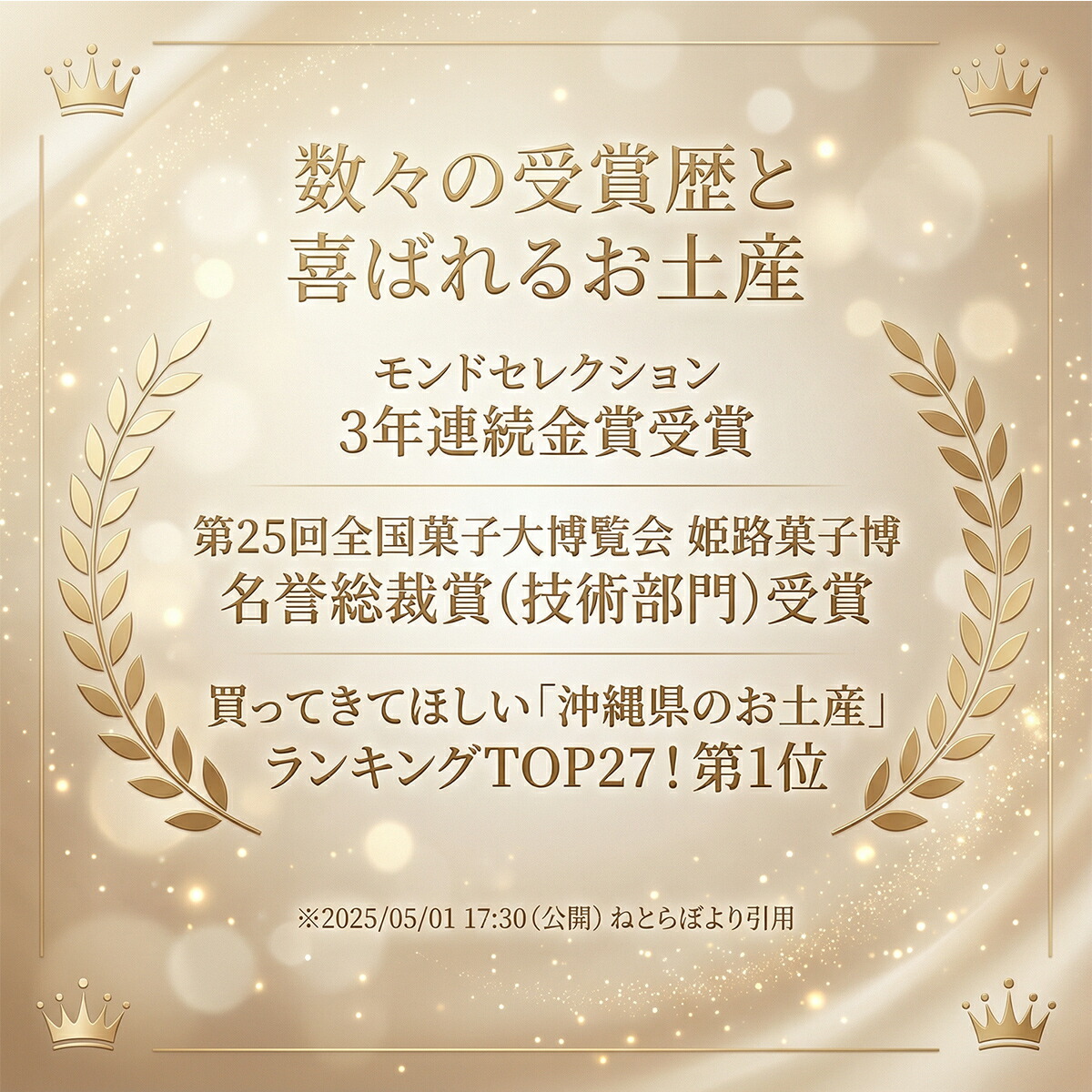 | 原材料名 | 小麦粉(国内製造)、砂糖、ラード、ショートニング、脱脂粉乳、 食塩(沖縄県宮古島製造)、粉あめ、乳糖/香料、膨張剤、 安定剤(CMC、アルギン酸Na)、乳化剤、リン酸塩(K、Na)、 着色料(V.B2)、(一部に小麦・豚肉・大豆・乳成分を含む) |