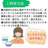お湯または水に混ぜてカラギ茶として、またコーヒーに入れるだけでいつもとは違った風味を楽しむことができます。※水溶性ではないため「混ざる」もので、溶けません。お好みで砂糖や黒糖とブレンドしてシナモントーストやお菓子作りにも。