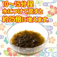 沖縄県産の乾燥もずく。水につけてからご使用するタイプで、約25倍の大きさにもずくが戻ります。お汁やサラダなど料理で使用するのにオススメです。