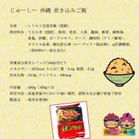 豚肉や昆布、ニンジン、椎茸の入った沖縄風炊き込みご飯「じゅーしぃ」。こちらは電子レンジで温めるだけの簡単タイプ。3パック入りの2個セット、6食分なので、ご家族用にも買い置きにも便利でオススメです。手早くできて栄養満点。忙しい日の強い味方です。