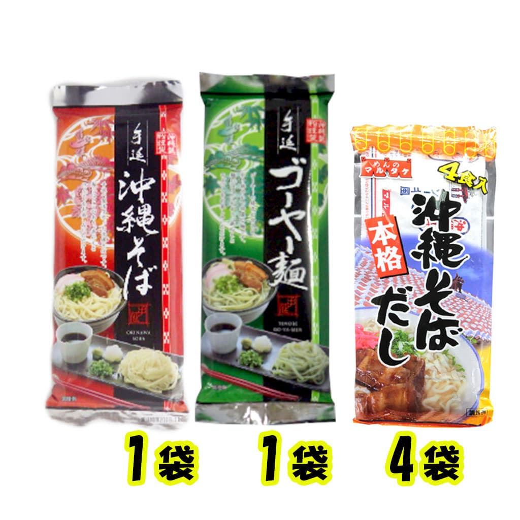手延沖縄そば ゴーヤ麺 2種類 沖縄そばだし(10g×4)4袋 沖縄そばセット 年越しそば