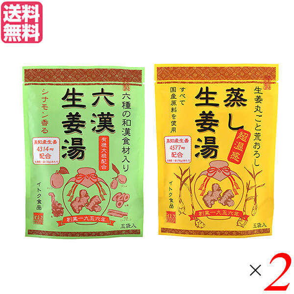 【超Pay祭!ポイント最大+12%!】生姜湯 しょうが湯 生姜 六漢生姜湯 蒸し生姜湯 2種セット×2 イトク食品 送料無料